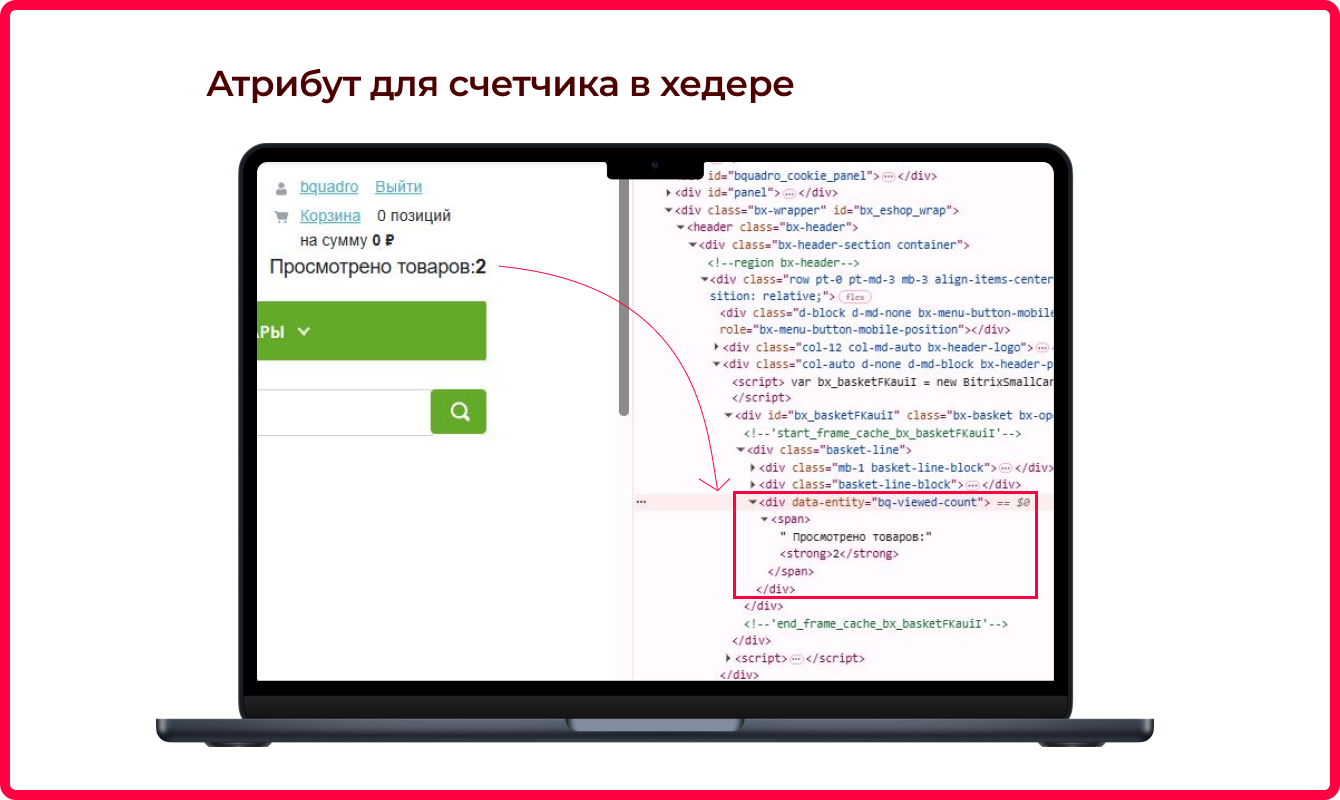 2. Для показа количества просмотренных товаров в шапке сайта необходимо разместить элемент с атрибутом: