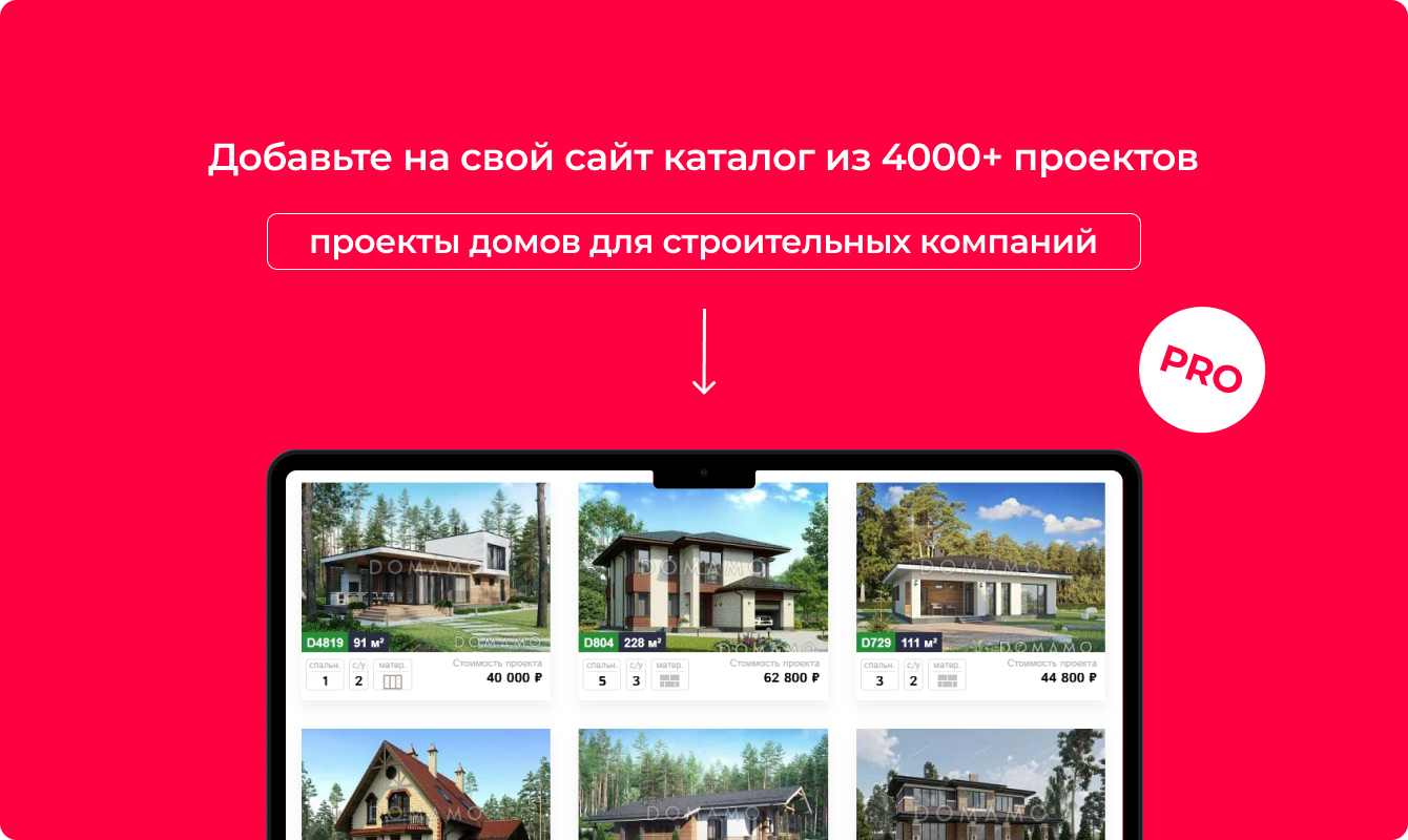 Модуль “Bquadro: Выгрузка проектов домов Domamo PRO” — отличный вариант для быстрого добавления на сайт строительной компании каталога из более чем 4000 архитектурных проектов. Модуль подгружает на сайт каталог с портала domamo.ru.